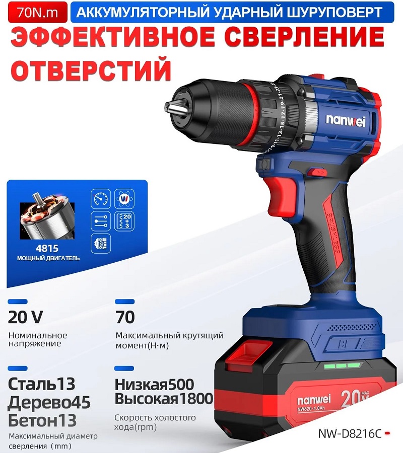 АКК шуруповерд NANWEI NW-D8216C 13мм