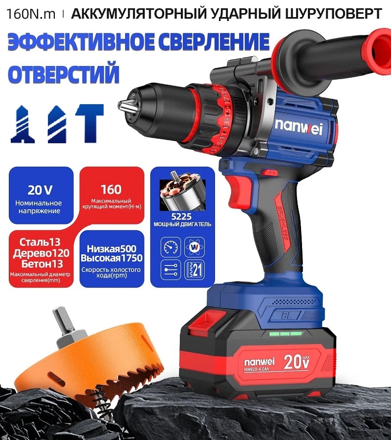 АКК шуруповерд NANWEI NW-D8218C 13мм ЛЕДОРУБ