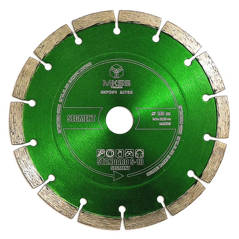Особенности: сегментные диски - универсальные диски, для широкого спектра строительных работ. Разделение режущей поверхности на сегменты дает возможность отводить отработанный материал и способствует дополнительному охлаждению. Отличительная особенность диска повышенная производительность.